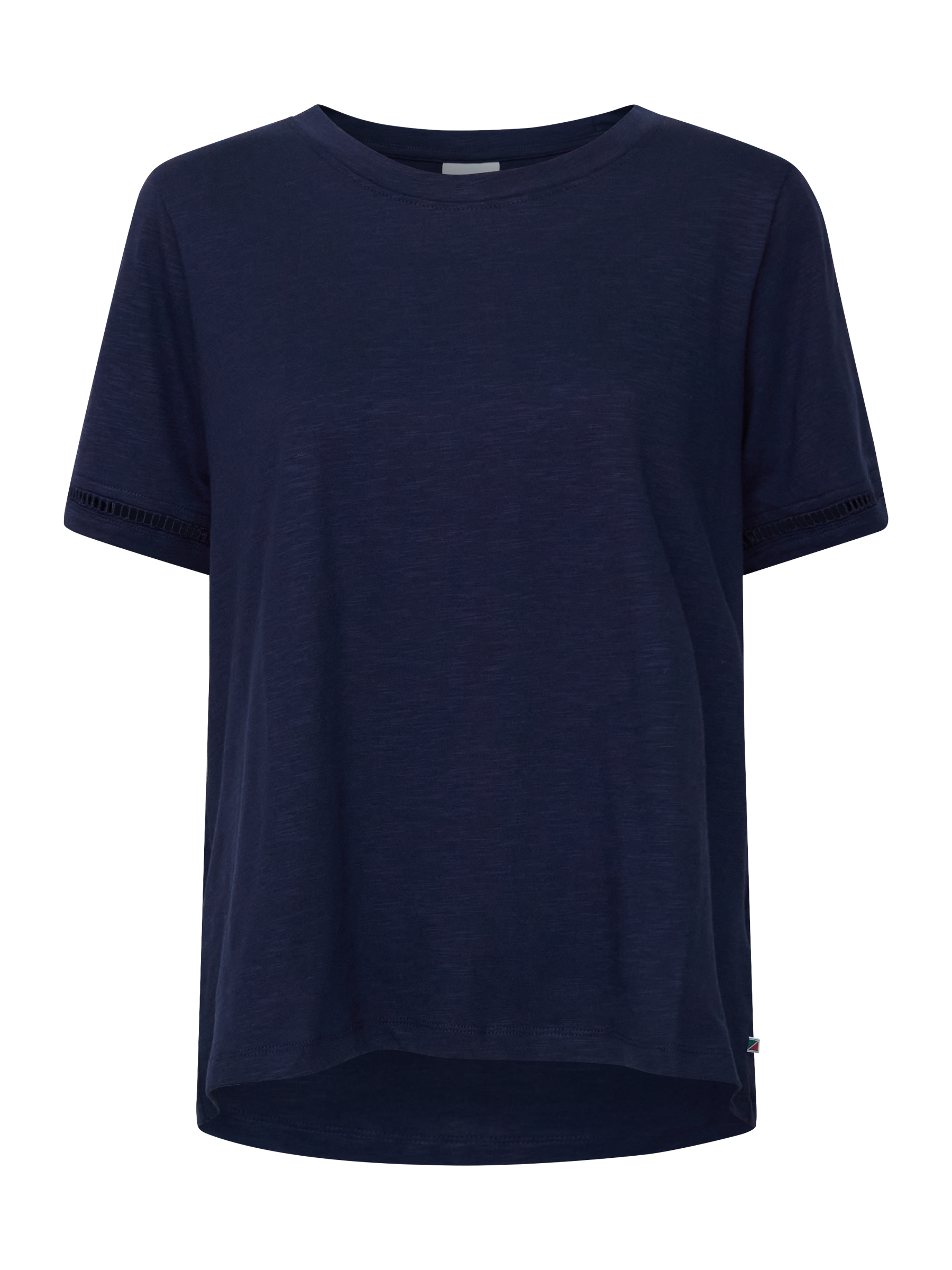 • Enkel T-shirt i 100% økologisk bomuld med et rent og tidløst udtryk. Blød kvalitet og afslappet pasform gør den ideel til hverdagsbrug og lag-på-lag.
