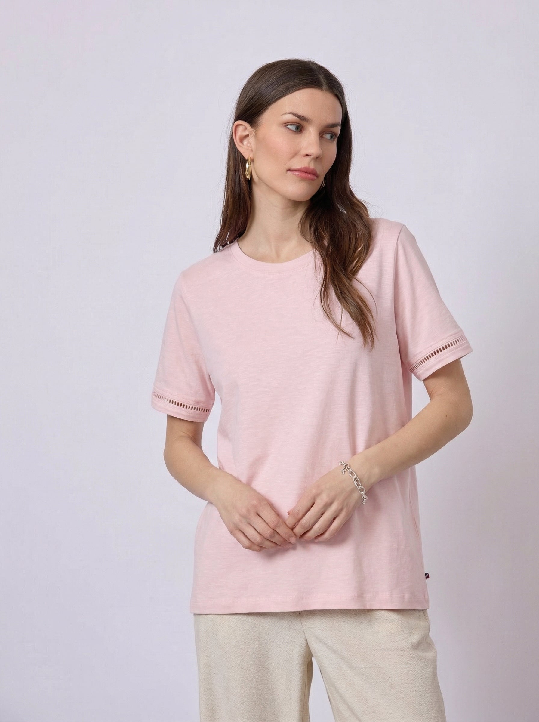Enkel T-shirt i 100% økologisk bomuld med et rent og tidløst udtryk. Blød kvalitet og afslappet pasform gør den ideel til hverdagsbrug og lag-på-lag.