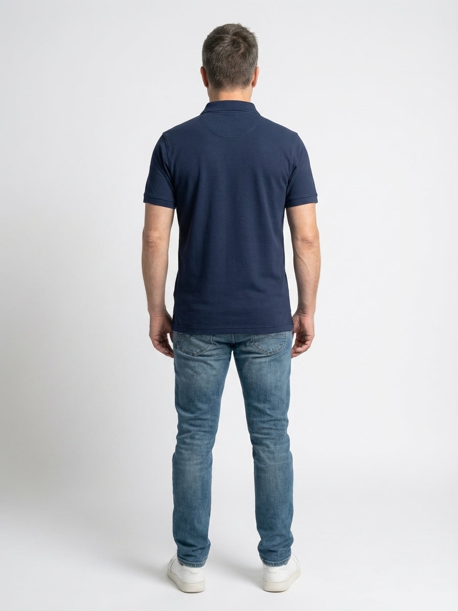 Klassisk herrepolo i 100% bomuld med et rent, tidløst udtryk og fine kontrastdetaljer. Den bløde kvalitet og afslappede pasform gør poloen velegnet til både hverdag og pænere, afslappede anledninger.