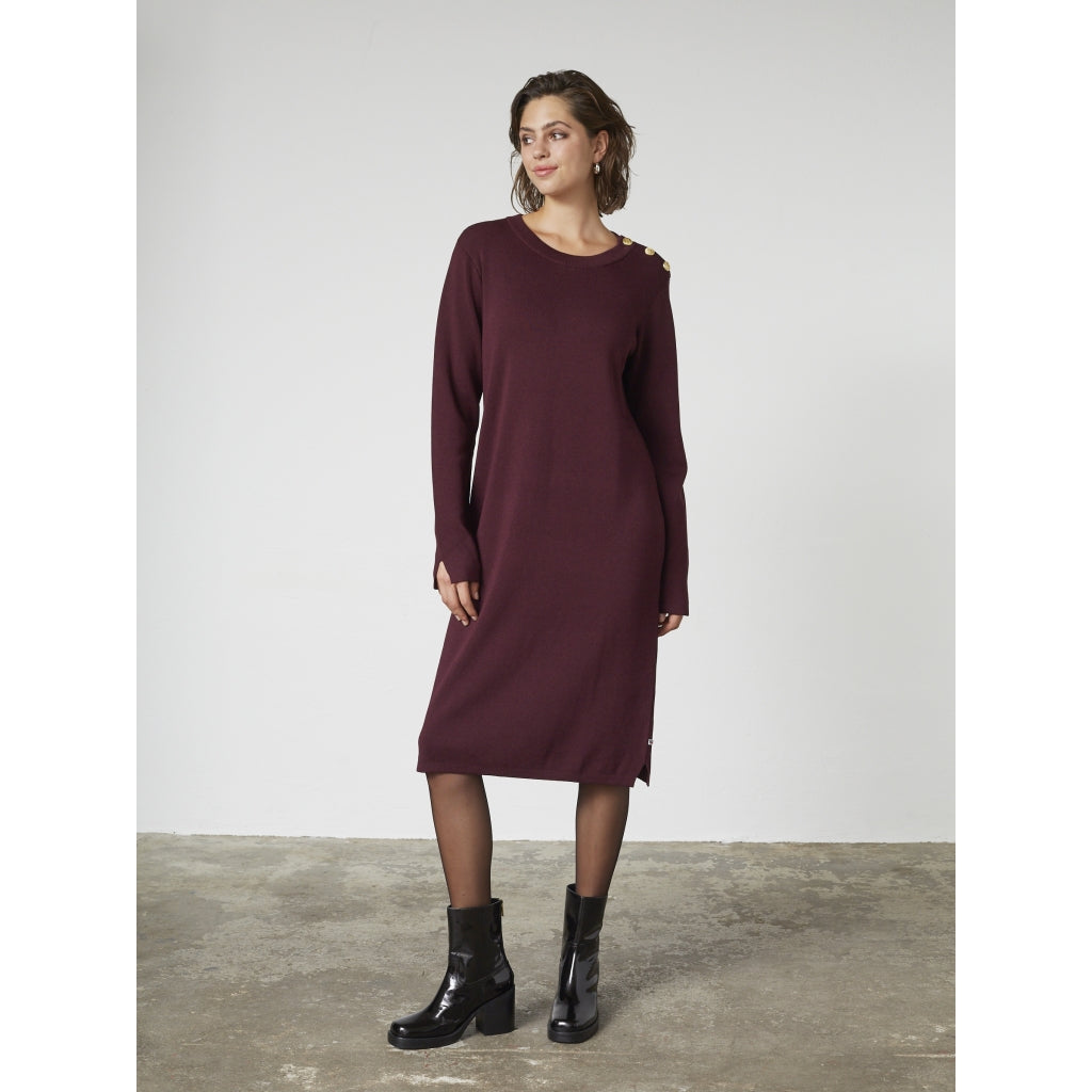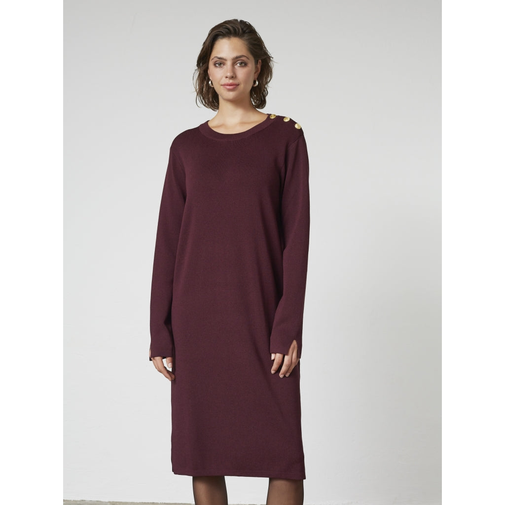 Enkel elegance møder komfort i denne kjole med lange ærmer og et lige snit. De fine knapdetaljer ved skulderen giver et diskret maritimt præg, mens den bløde kvalitet gør kjolen behagelig at bære hele dagen. En stilren garderobeklassiker, der kan bruges både med strømpebukser til hverdagen og med støvler til en mere raffineret stil.