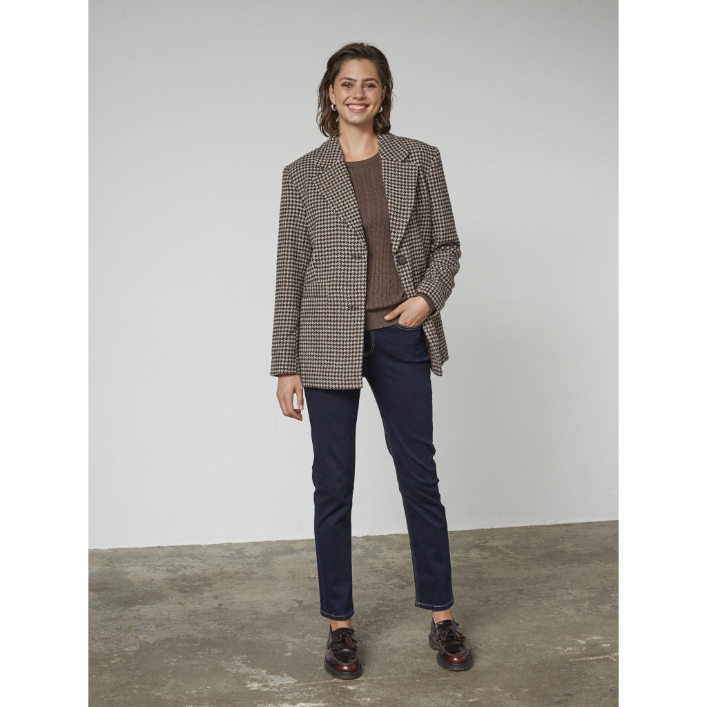 Lun og stilren – Bianca jakken kombinerer klassiske tern med en afslappet pasform. Den bløde uldblanding giver både komfort og struktur, perfekt til overgangssæsoner. Let at style, og let at holde.