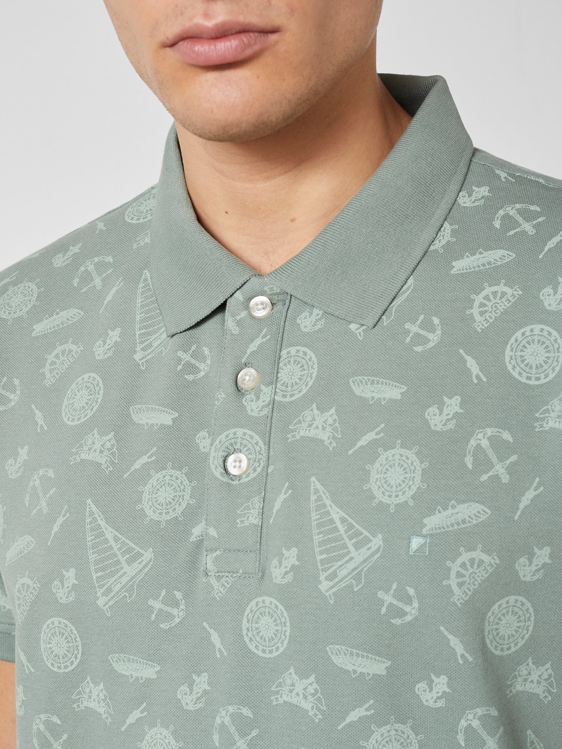 COLTON POLO T-SHIRT - Olive pattern with green pastel