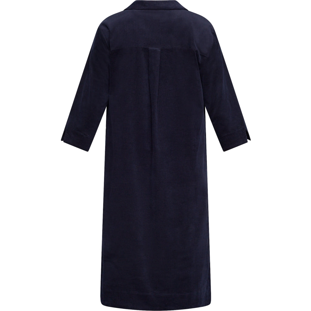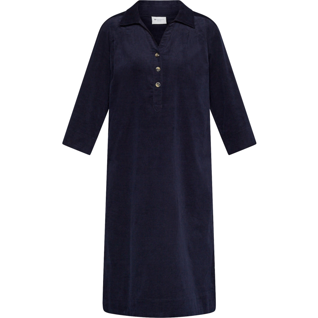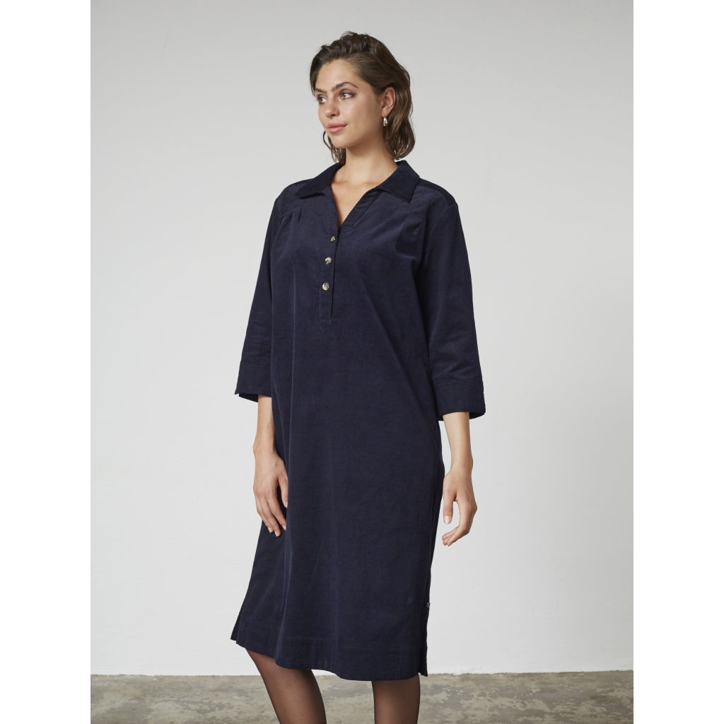 Das Kleid Dinah ist aus weichem Samt gefertigt und hat eine lockere Silhouette. Es besitzt einen klassischen Kragen und eine Knopfleiste vorne – es lässt sich sowohl solo als auch an kühleren Tagen mit Strumpfhosen tragen.