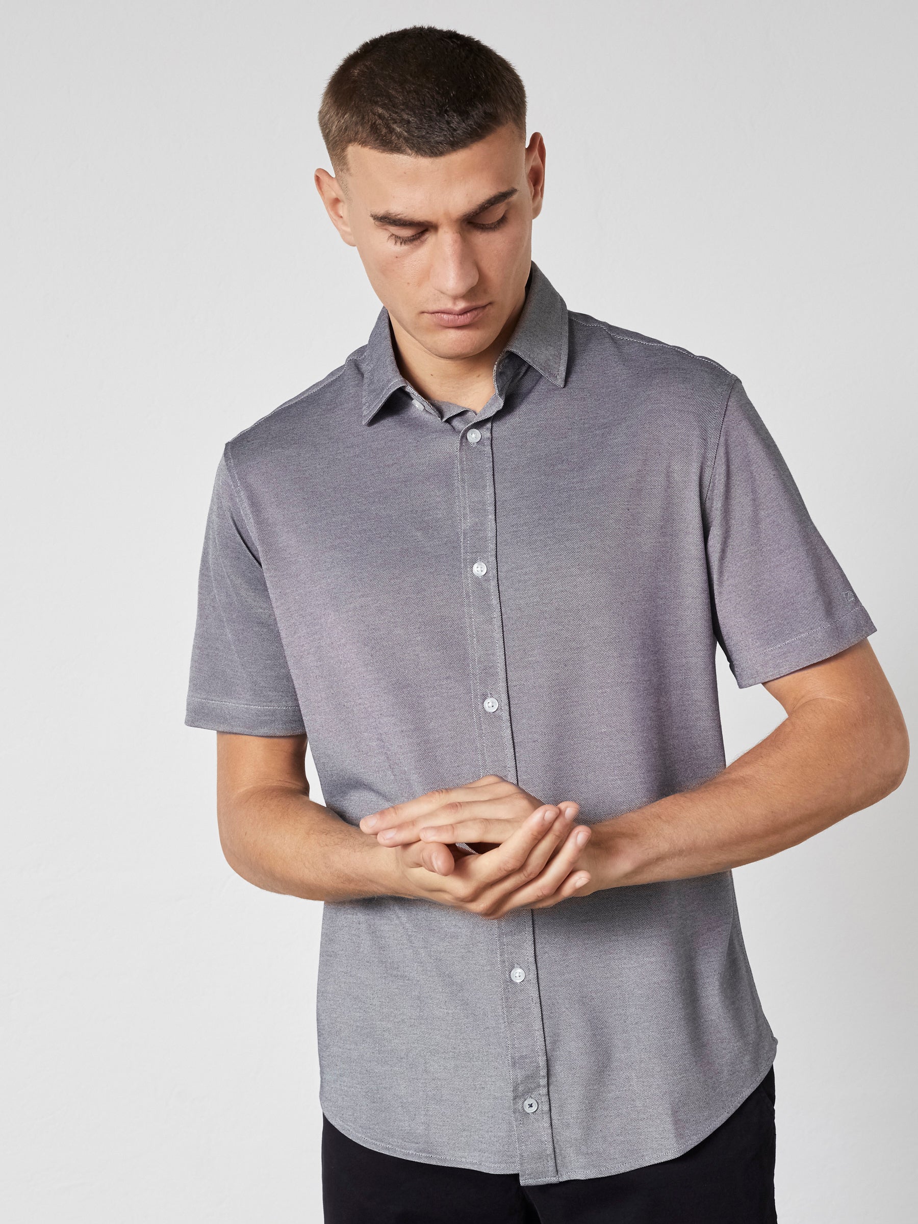 Let og behagelig kortærmet herreskjorte i en blød materialeblanding med et rent, sommerligt udtryk. Skjorten har en glat overflade og en komfortabel pasform, der gør den velegnet til både hverdag og pænere brug.