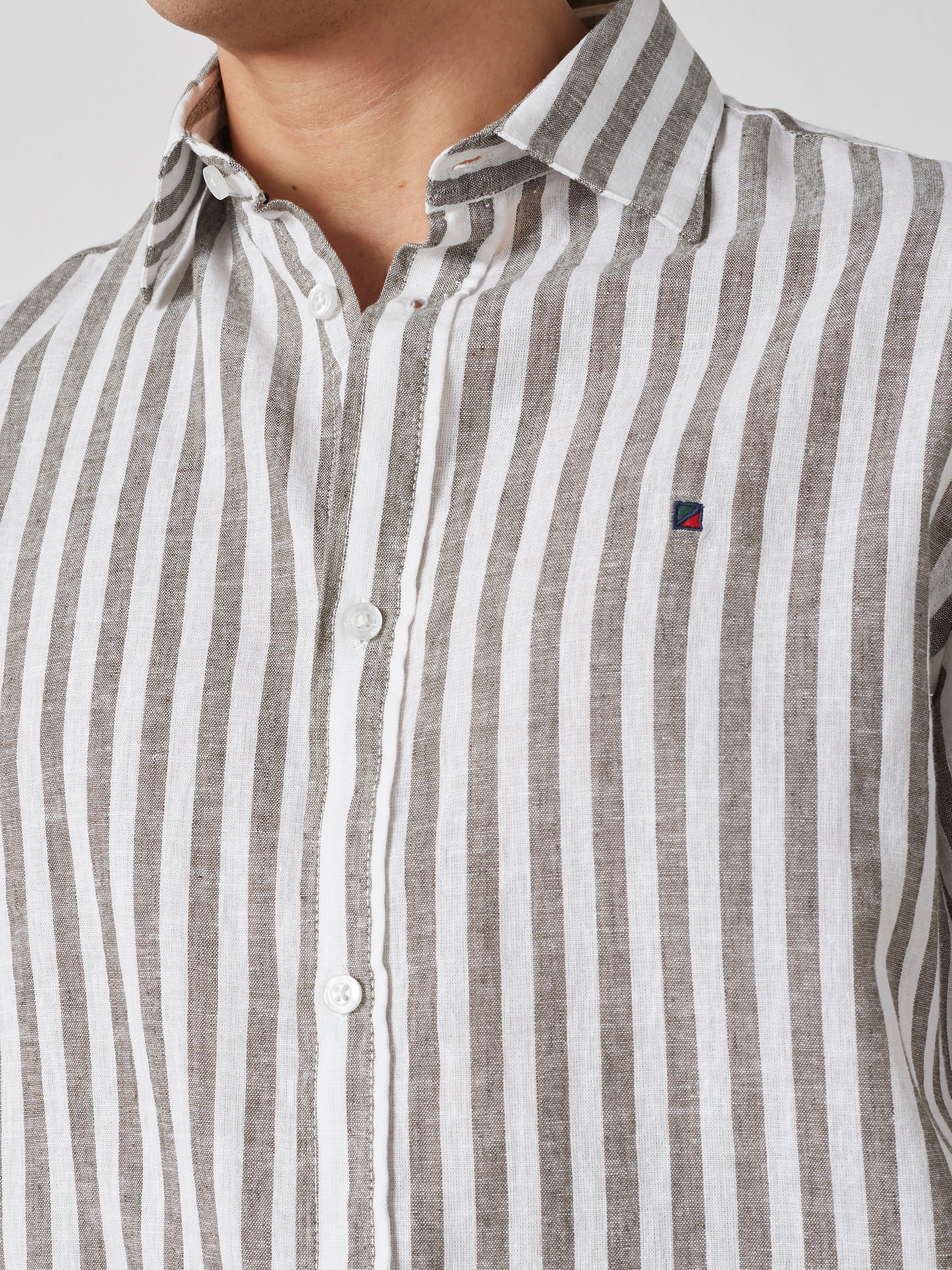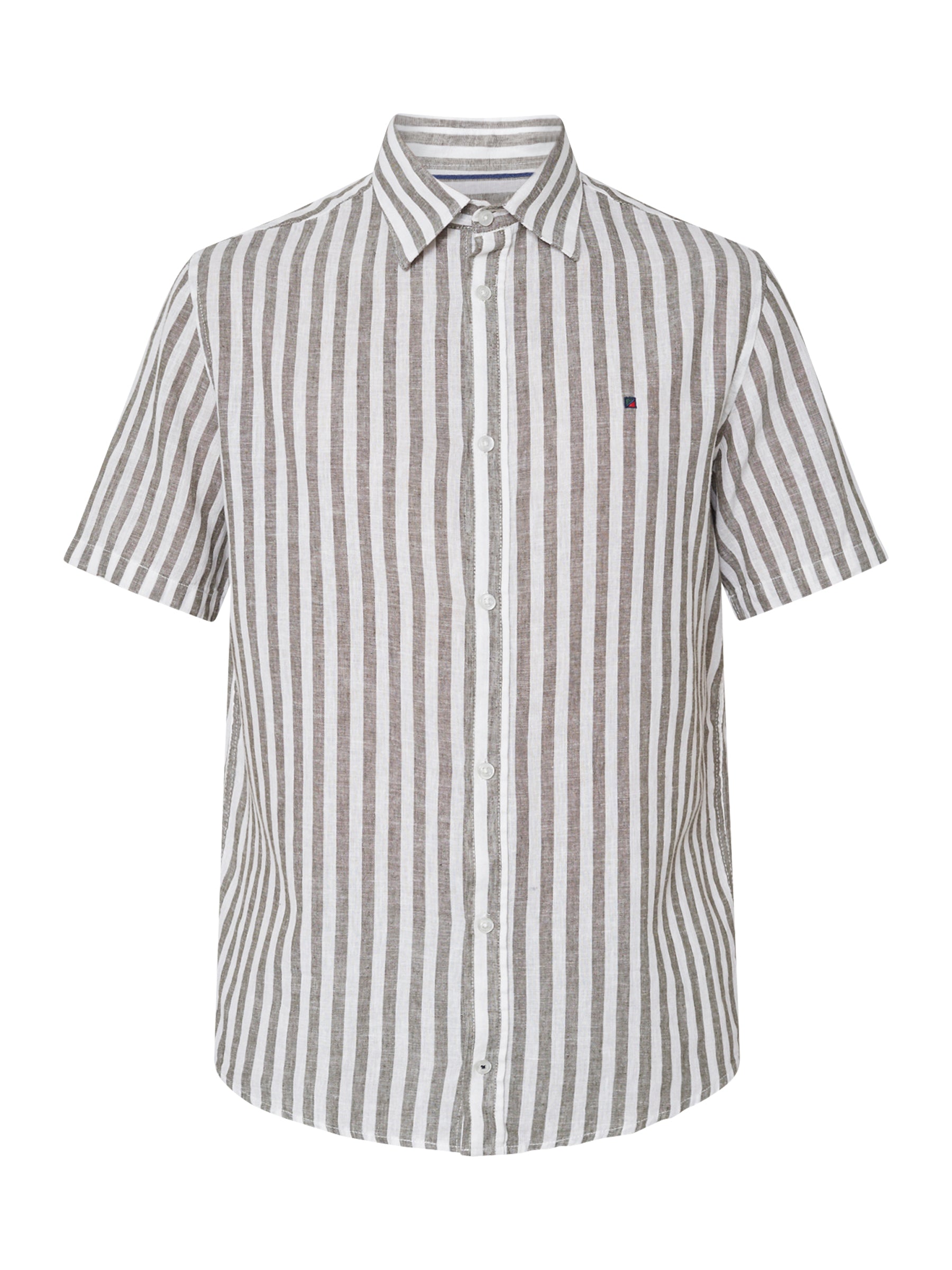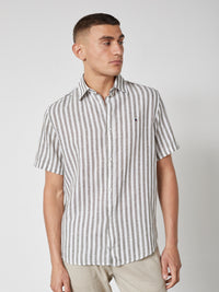ASGER LINEN SHIRT SS - Olive Stripe