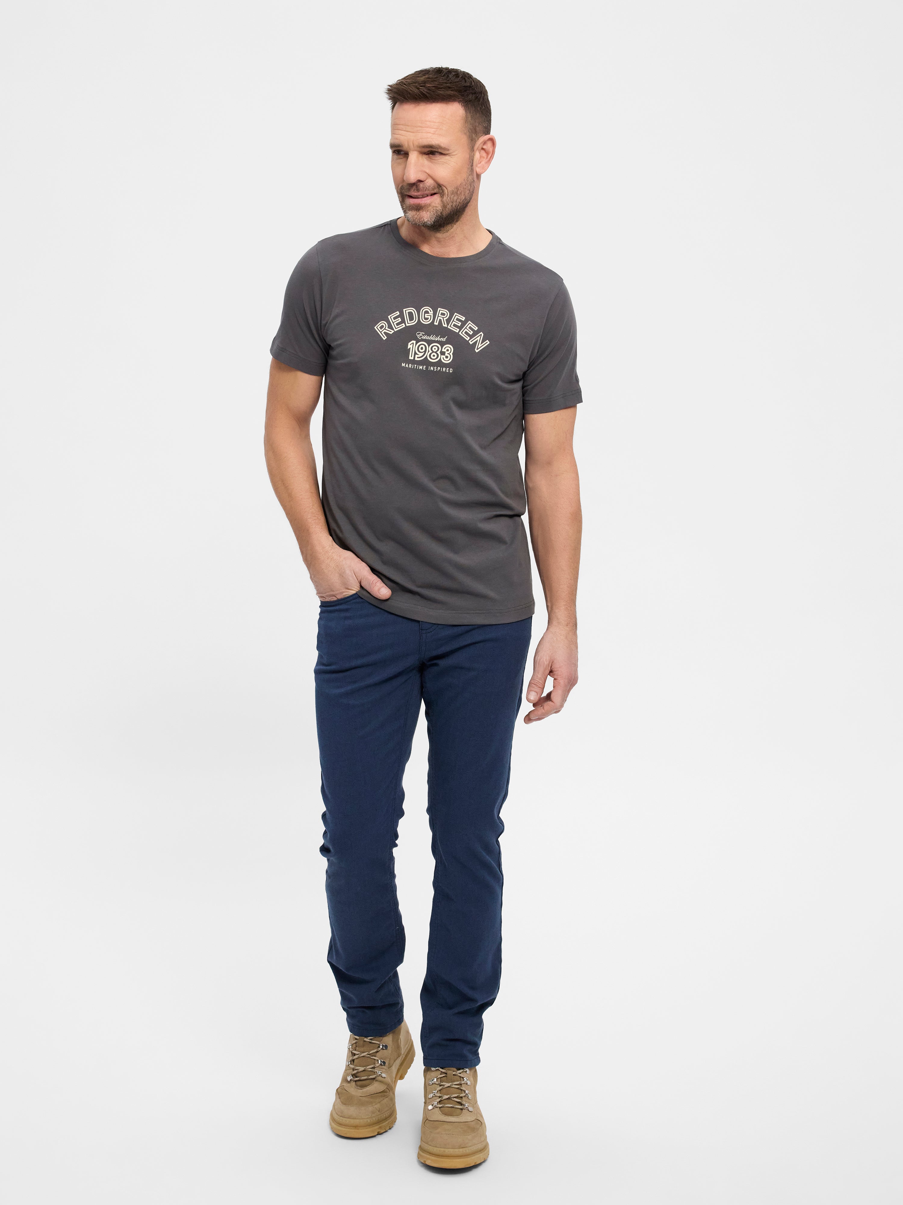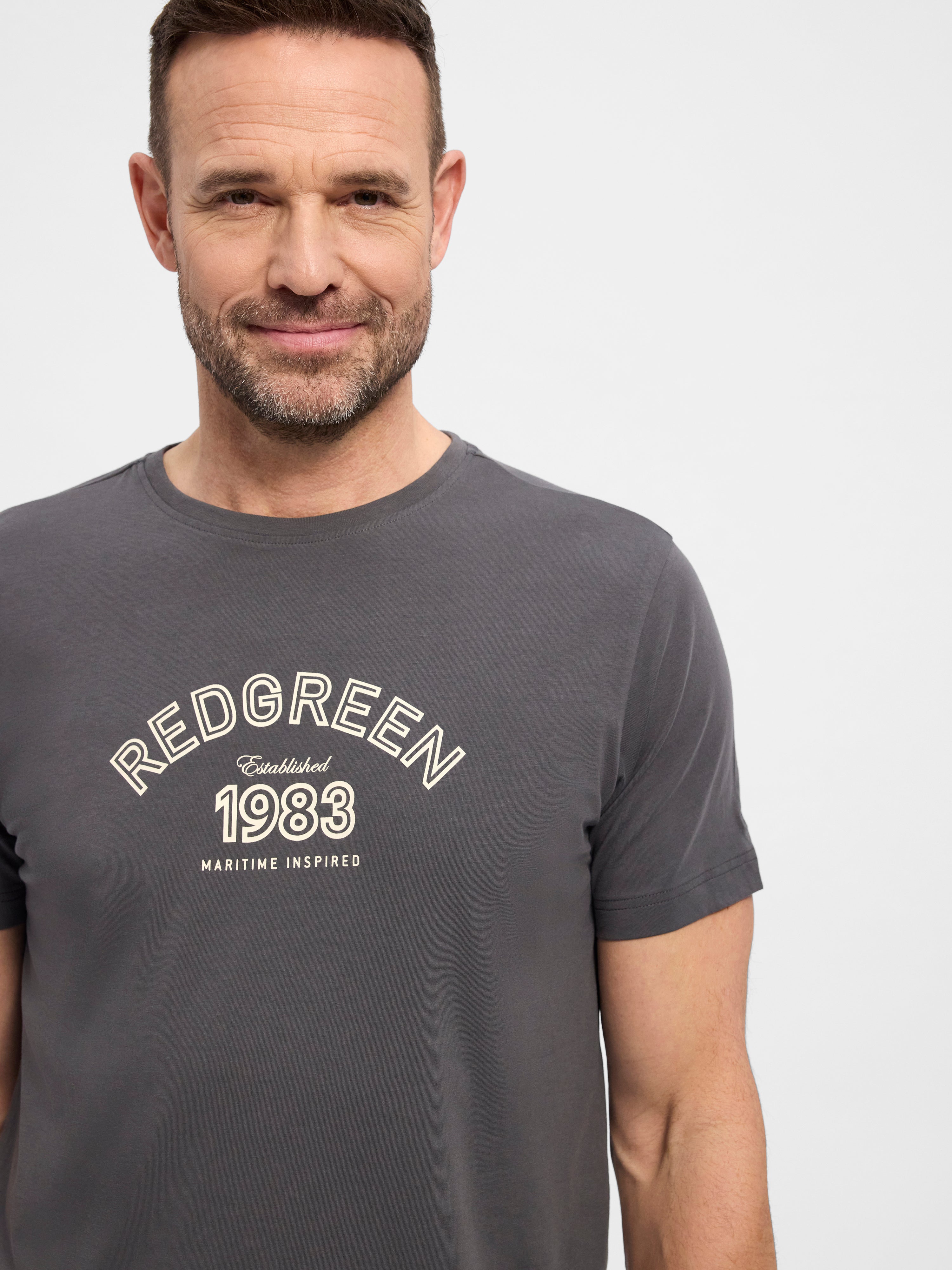 Das T-Shirt hat einen Aufdruck auf der Vorderseite und eine klassische Passform. Es besteht aus einem weichen Baumwollmischgewebe mit leichtem Stretchanteil für mehr Tragekomfort im Alltag.