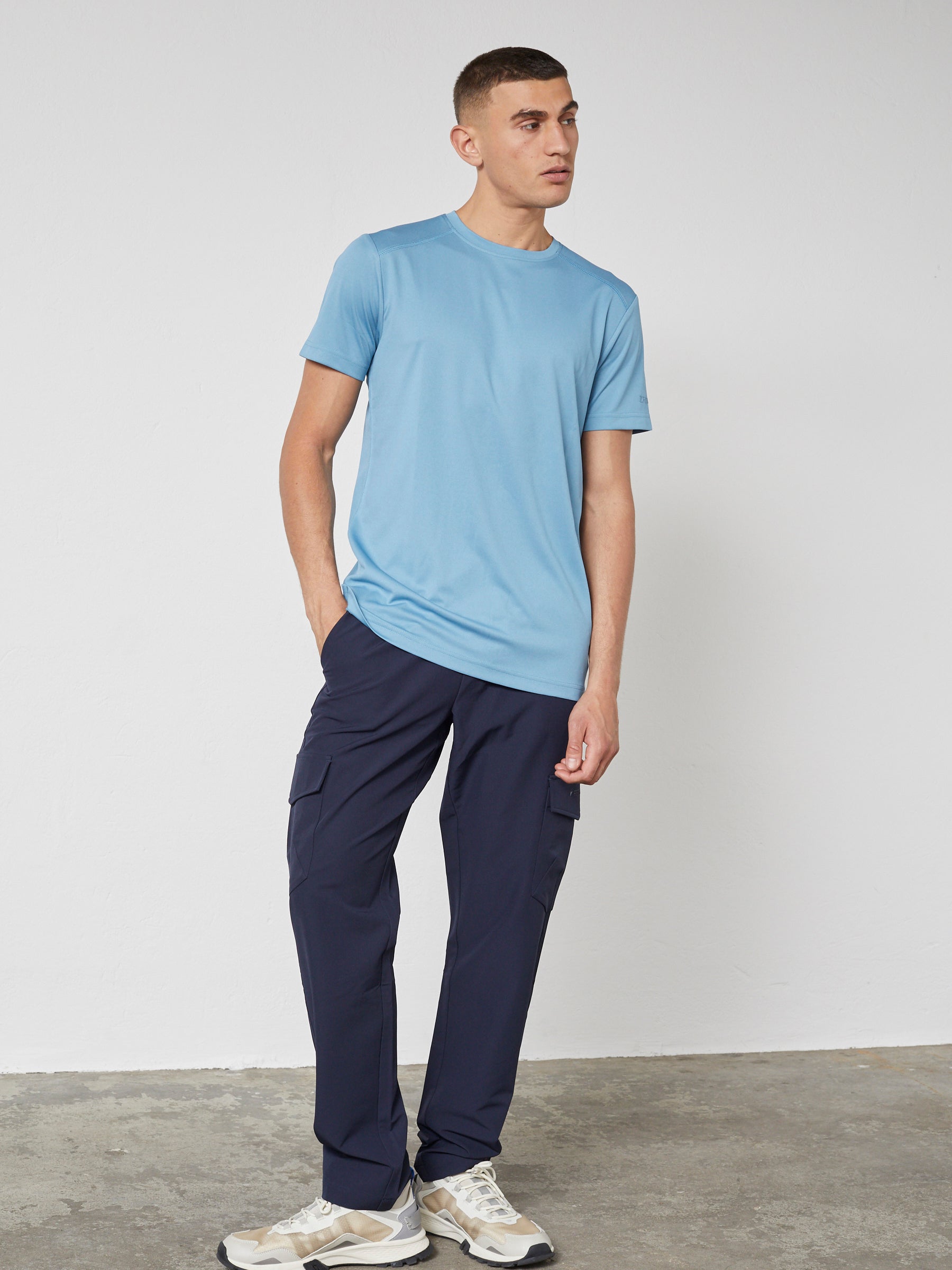 Let og funktionel herre-T-shirt i 100% polyester med et rent, sporty udtryk. Den åndbare kvalitet og behagelige pasform gør T-shirten velegnet til både hverdagsbrug og aktive dage.