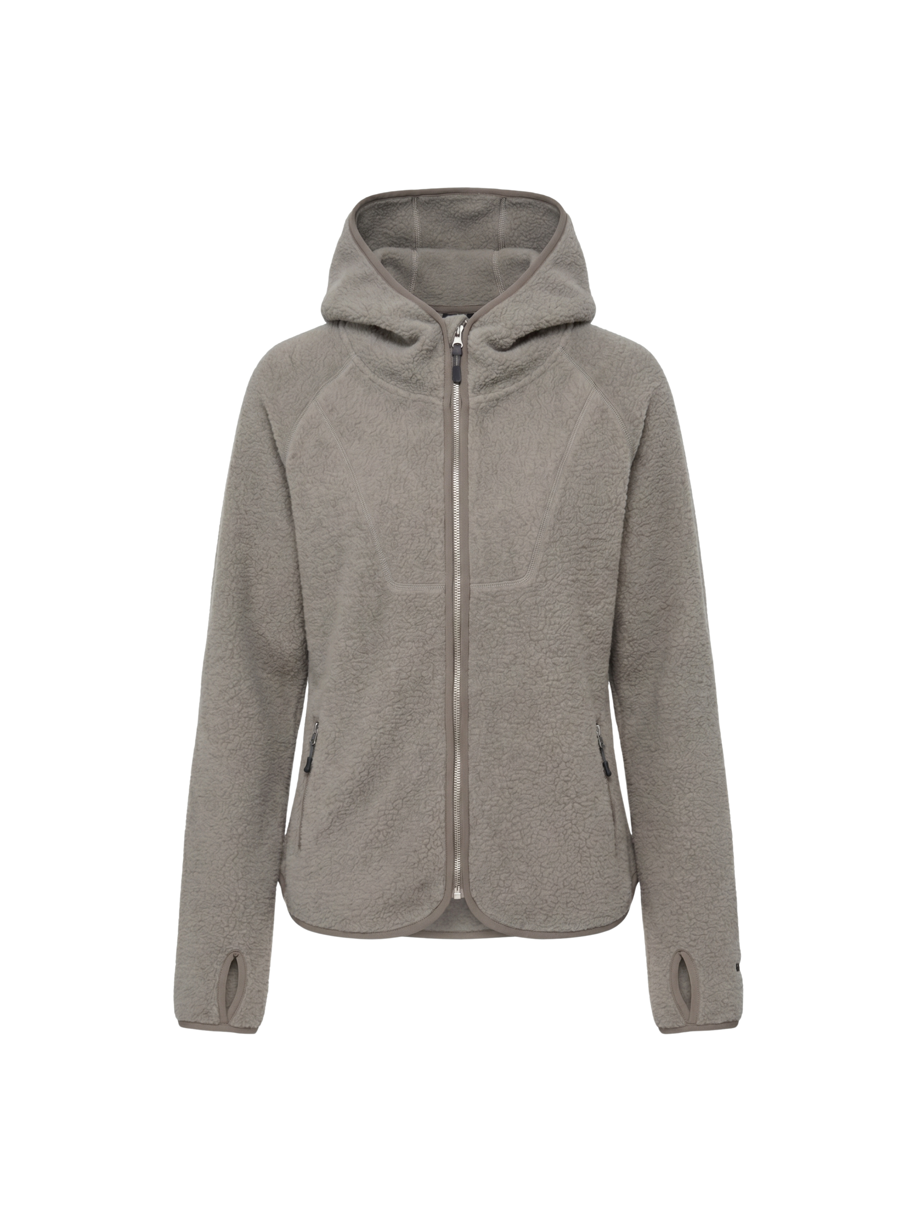 Blød fleecejakke i 100% genanvendt polyester med hætte og en afslappet, komfortabel pasform. En varm og let jakke, der fungerer godt som lag i køligere vejr.