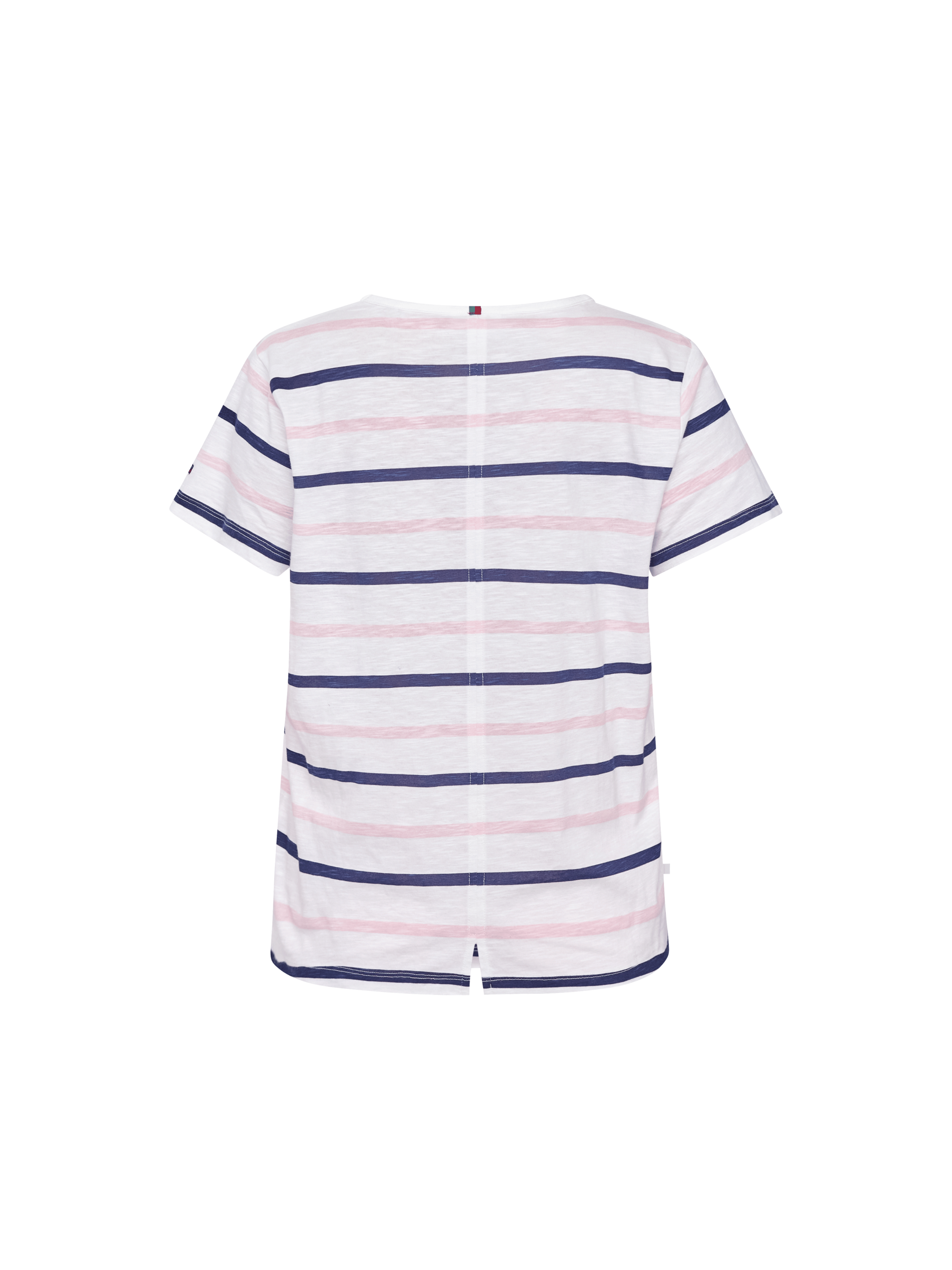 T-shirt i blød økologisk bomuld med klassisk rund hals og korte ærmer. Chris har striber i friske farver og en lille slids bagpå, som giver et diskret twist til et enkelt design. En let og behagelig hverdagsfavorit.